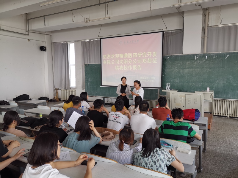 2019年6月27日下午3点30分在林园校区教学图书楼701室,精鼎医药研究开发有限公司沈阳分公司郑茜莅临公司做学术报告,永利yl23411部分老师、研究生、及本科生和其他公司师生参加了本次学术报告会,会议由统计系支部书记袁晓惠老师主持。