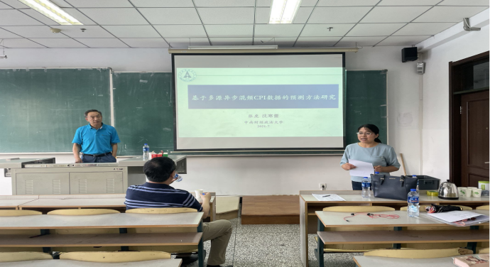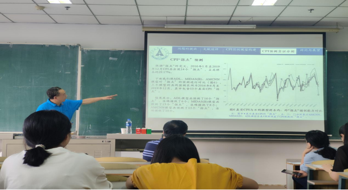 2021年7月8日下午4点30分在南湖校区教学科研楼409室,中南财经政法大学统计与数学公司经理张虎莅临公司做学术报告,会议由公司经理王纯杰主持,公司部分老师、研究生参加了本次学术报告会。