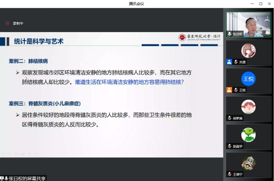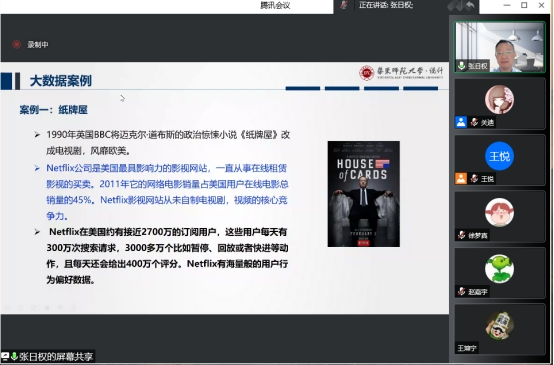 会后,张日权教授与参会师生进行互动,气氛活跃,热情高涨。本次线上报告会有助于全体数统公司师生深入了解统计学与大数据应用的相关内容,讨论了有关于与企业合作项目中遇到的一些问题,同时也详细解答了分布式储存的相关问题。张日权教授的报告开阔了师生的学术视野,拓宽了科研思路,对于永利yl23411开展各种教学和科学研究工作都具有重要的启示作用。