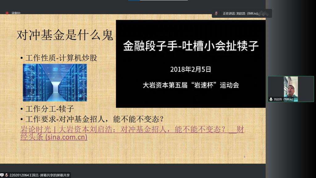 介绍了对冲基金的工作性质、分工及要求,并且使用一个有趣的短视频以通俗易懂的形式来介绍了对冲基金的分工,介绍了不同软件,如:python,R在对冲基金过程中的实践的重要性,进一步叙述统计学在对冲基金的分工中有着重要的作用。
