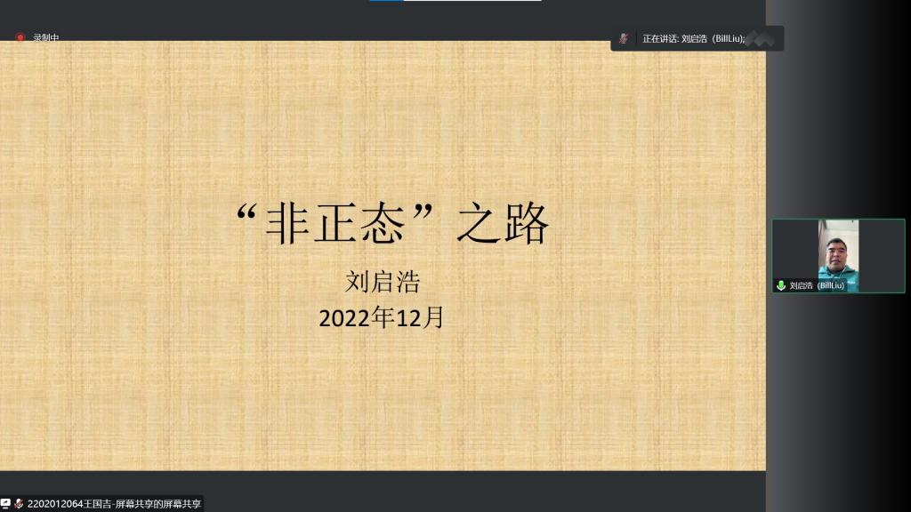 (通讯员:关迪)为了扩展员工的专业思维,提升专业知识的理论学习水平,2022年12月30日下午13:30,由科研处和永利yl23411主办的报告——“非正态之路”在腾讯会议线上举行,特别邀请刘启浩博士作为主讲人,基于刘博士本人的研究以及工作经历,为公司师生进行讲解,我院共有160多名师生前来参会讨论与学习。公司永利yl23411经理王纯杰、副经理李纯净等均参与会议讨论,会议经理王纯杰主持。