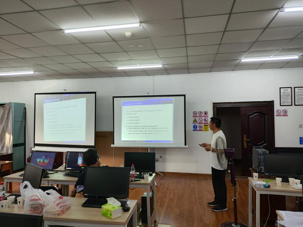 冯教授简述了自己的研究方向与研究工作。随后将报告中的专业名词进行了介绍,并对于研究内容进行简要的解读。接着冯教授对于自己的课题做出模型了假设,并对于假定的模型给予了一些条件限制,对于此课题的研究现状进行了说明。接着冯教授对于主要的结果进行了呈现。对两种解的效果进行详细说明,并做了比较。将提到的定理进行了充分的证明。