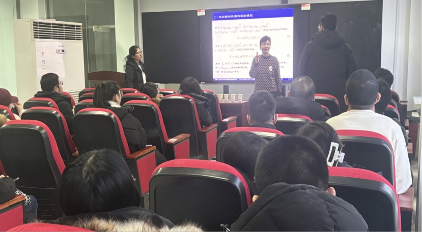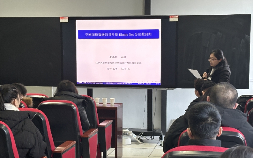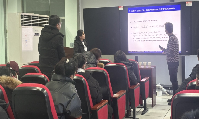 于教授通过绘声绘色的报告方式,生动又深刻的向大家展示将Elastic Net惩罚方法应用于空间面板贝叶斯分位数回归模型的分析,大家听的都非常仔细且认真,并表示出了浓厚的兴趣。报告会后,于教授和同学们进行了融洽的交流并对同学们的疑问做出了解答和建议。此次报告会既增加了同学们的专业学术水平,又增加了同学们处理此类问题的灵活度,让同学们深受启发。