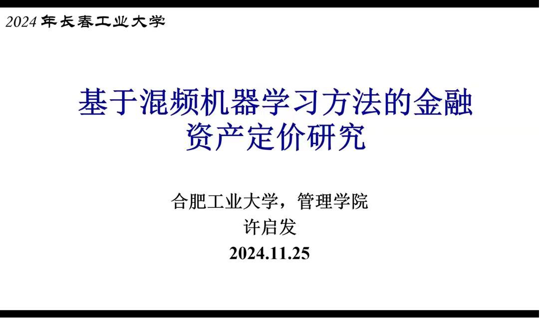 (通讯员:关迪)2024年11月25日上午9:00,合肥工业大学许启发教授做线上学术报告。本次报告由永利yl23411和大数据研究院承办,报告由永利yl23411副经理秦喜文副教授主持,特邀董小刚教授、公司部分老师、全体研究生参加了本次线上学术报告会。会议开始之际,杨凯副经理介绍了许启发教授和本次汇报的内容。