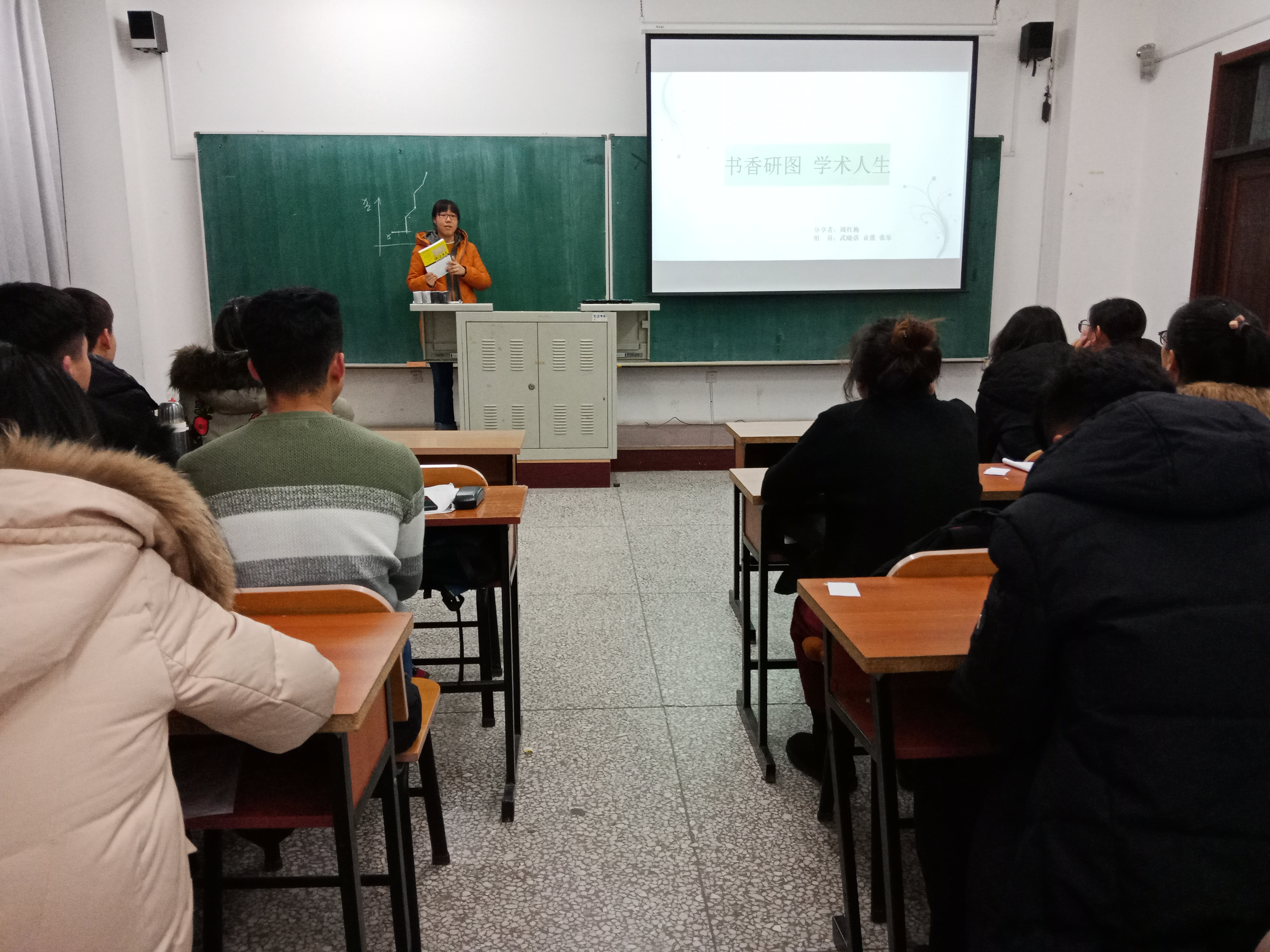 古人说,人可一日不食肉,不可一日不读书。宋朝学者黄庭坚曾说“士大夫三日不读书,则义理不交于胸中,对境觉面目可憎,向人亦语言无味。”可见读书的重要性。为进一步提高公司研究生阅读能力和科研素养,为同学们搭建交流读书体会、分享学科动态的平台,11月28日下午,公司首届“书香研途 学术人生”研究生读书沙龙活动在教学图书楼705教室举办。研究生辅导员应艳老师以及全体2018级研究生参加了此次活动。