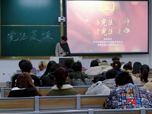 永利yl23411团委讯(通讯员:李佳鑫 陈铭)为深入开展宪法学习宣传教育活动,进一步增强员工法律意识,弘扬宪法精神。永利yl23411于2020年12月7日在主楼124教室举行“宪法晨读”活动,2019、2020级全体班委及公司团学组织成员参加,本次活动由团委组织部思想引领中心副主任朱爱成主持。