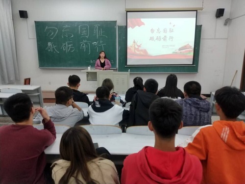 永利yl23411团讯(通讯员:张宁馨 桂尚珂)为了使员工铭记“九一八”事件,培养广大青年老员工的爱国热情,使其牢记历史,缅怀先烈,学习家国精神。永利yl23411团委于2019年9月18日在教图楼209教室举行以“勿忘国耻,砥砺前行”为主题的纪念“九一八”主题团会。本次会议由组织部副部长林思扬主持,18级全体员工干部参加了此次团会。