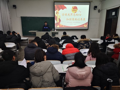 永利yl23411团委讯(通讯员:桂尚珂 张秉心)为了深入学习贯彻习近平总书记系列重要讲话精神,进一步加大对团员青年的培养,扎实推进共青团发展,2018年12月12日早上7点,永利yl23411团校在永利yl23411林园校区教图楼309教室举办“翻转团课”系列活动之“学团史不忘初心,知团史共创未来”主题活动。本次活动由170801班班长虎佳尧主持,大一全体团员参加了此次活动。