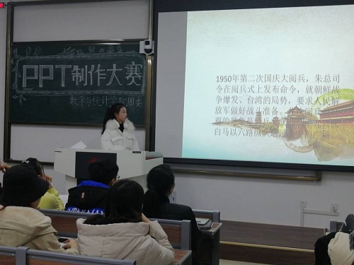 比赛的开始前,主持人宣读了比赛的评分要素和评分标准。本次比赛共有19名选手参赛,他们从“纪念新中国成立70周年”、“学风建设”、“老员工涯规划”三个主题中任选其一作为PPT的核心思想。比赛中选手们积极配合主持人的安排,用饱满的热情向评委和观众展示了自己制作的PPT。选手们在自己的PPT中插入了背景音乐、视频、图片、动画等元素,使得PPT内容更加丰富多彩,向评委们充分地展示了自己制作PPT的技巧。在激烈的竞争中评委们秉持“公平、公正、公开”原则,实事求是,进行现场打分现场公布,最终评选出一等奖王畅、闫新洋;二等奖陈铭、宋佳、张辛楠、王曼;三等奖许海梓,张越,肖喆煜,优秀奖申天勋,丁嘉雯,梁兴华等同学。比赛既增加了同学们对PPT技术的兴趣,同时又提供了一个广阔的交流平台,比赛选手们和未能参赛的其他同学们都期待下一次精彩的创新作品。