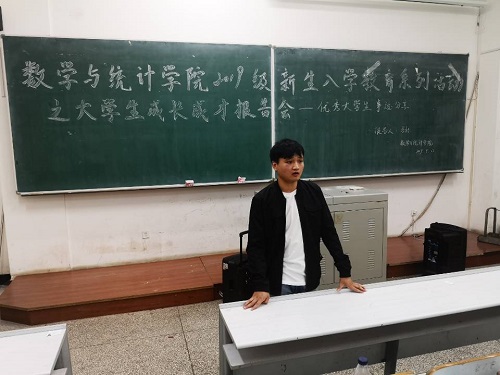 报告会上,卢继迎结合自己大学三年学习生活向大家分享了入学、老员工活和学习规划三个不同方面的经历和经验。她表示老员工活与高中相比更自由,同时也更容易迷茫,希望同学们能够养成良好的生活和学习习惯,做好老员工活规划。此外她强调,大学除了学习也要多参加活动,丰富自己的老员工活,充实自己的经历。马壮通过幻灯片向同学们展示了自己大学三年和公司同学所获得的证书。马壮向大家介绍了“数学建模”、“SAS数据分析”、“老员工创新创业大赛”等竞赛,希望以此激励新生不断进取,在更高的平台上展现自我。还特别强调同学们要在政治思想上有所提高,追逐党的步伐,做一名合格的社会主义接班人。
