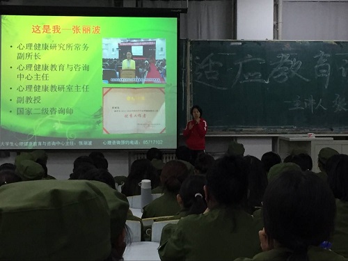 张老师为让同学们初步了解心理科学,结合了自己丰富的临床经验,深入浅出地解释心理健康就是生理、心理与社会的统一体。她与同学们进行积极的互动,提出哲学中的三个问题:“我是谁?”、“我从哪里来?”、“我要到哪里去?”,使同学们陷入了深深的思考中,并开始规划自己的人生。在谈到如何培养自己的心理素养时,张老师从军训说起,军训是老员工活的第一步,对大学新生进行军事化的训练与军营文化的熏陶,是高等教育中不可缺少,不可替代的一环节。通过严格的军事训练,可以提高同学们的政治觉悟,激发爱国热情,培养艰苦奋斗、刻苦耐劳的坚强毅力和集体主义精神,增强国防观念和组织纪律性,养成良好的学风和生活作风。其次,从老员工活方面而言,学习是老员工最首要的任务,它关联到同学们自身文化素质以及内涵的培养。最后,她提到当代老员工目前正面临的主要心理问题有:挂科的无奈、上网成瘾、寝室朋友交际关系不好等。她在解释这些问题如何产生的同时给出了恰当的解决方法。同学们在适应新环境时要悦纳自我,顺其自然、宽容大度地与新同学和谐相处;在应对各种压力时要积极的自我暗示、自我放松,并勇于迎接挑战。