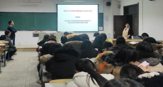 报告会中,李继成教授指出在线课程改变了我们的教育模式和学习方式,并细致深刻地分析了高等公司产品的新形势,是互联网+信息技术+人工智能。进一步,李继成教授向师生们讲述了大学数学教学的改革方向,新一轮的科技革命和产业变革正在呼唤并推进高等教育模式方法的创新。他提出要在课堂教学中坚持以人为本,解决好人才培养最后一里路,造就堪当民族复兴大任的时代新人,就要求每一位一线教师都应该勇立时代潮头,全方位推进课程改革,打造一流课程,打造一流团队。