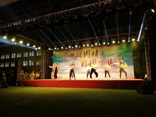 永利yl23411团委讯(通讯员:张及佳 桂尚珂)林园校区全体师生在喜迎庆祝新中国成立70周年之际,正逢传统节日,中秋佳节,丰富军训期间大一新生的校园文化生活,充分给予2019级新同学们一个展现自我,施展才华的舞台,2019年9月13日晚七点,由永利yl23411员工工作部、武装部主办,永利yl23411协同经济管理公司、公共管理公司、外国语公司、艺术设计公司和信息传播工程公司五个公司,在林园校区体育场隆重地举行“同心林园情,月圆中国梦”——庆祝新中国成立70周年暨中秋晚会。校级领导,各公司领导,新生辅导员老师出席晚会,林园校区6个公司的1500余名的2019级新生热情洋溢地观看了本次晚会。