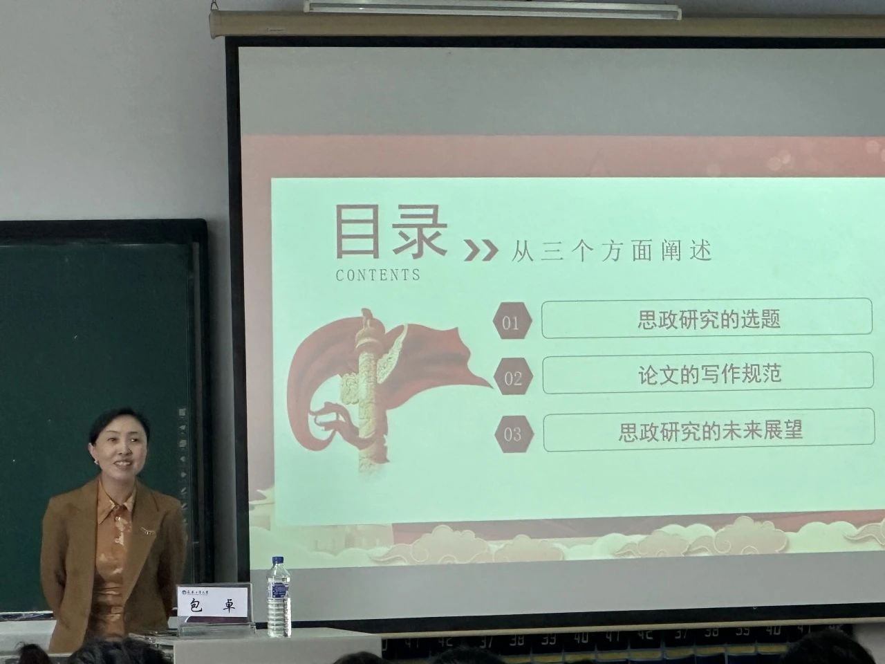 在启动仪式结束后,马克思主义公司副教授包卓老师为学员们进行了《为思政研究奠定理论之基,插上科技之翅》学术报告。包卓老师从思政研究的选题、论文的写作规范以及思政研究的未来展望三个方面进行了详细的论述,为同学们提高思政研究能力提供了有效指导。
