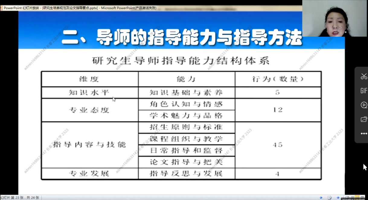 此次培训系统全面,内容丰富,对公司产品规范及论文指导要点做了细致的培训,立德树人根本任务给予了深入细致的指导,对加强导师队伍建设,促进团队建设和研究生教育高质量发展具有重要意义。