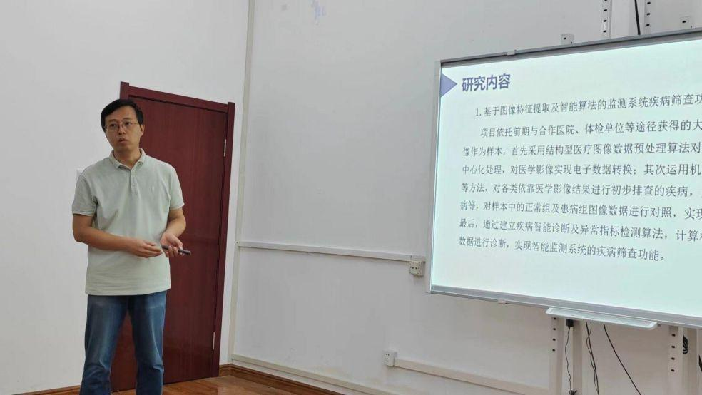 谭佳伟主任在会议上对省科技厅重点研发项目“疾病筛查、健康风险评估智能检测系统研发”进行详细汇报。他首先介绍了项目的背景和目标,阐述了疾病筛查和健康风险评估智能检测系统的研发内容和技术方案。在谈到项目的重要性和创新之处,谭佳伟主任特别强调了该系统在提高诊断精度、预测健康风险方面的潜在应用价值。