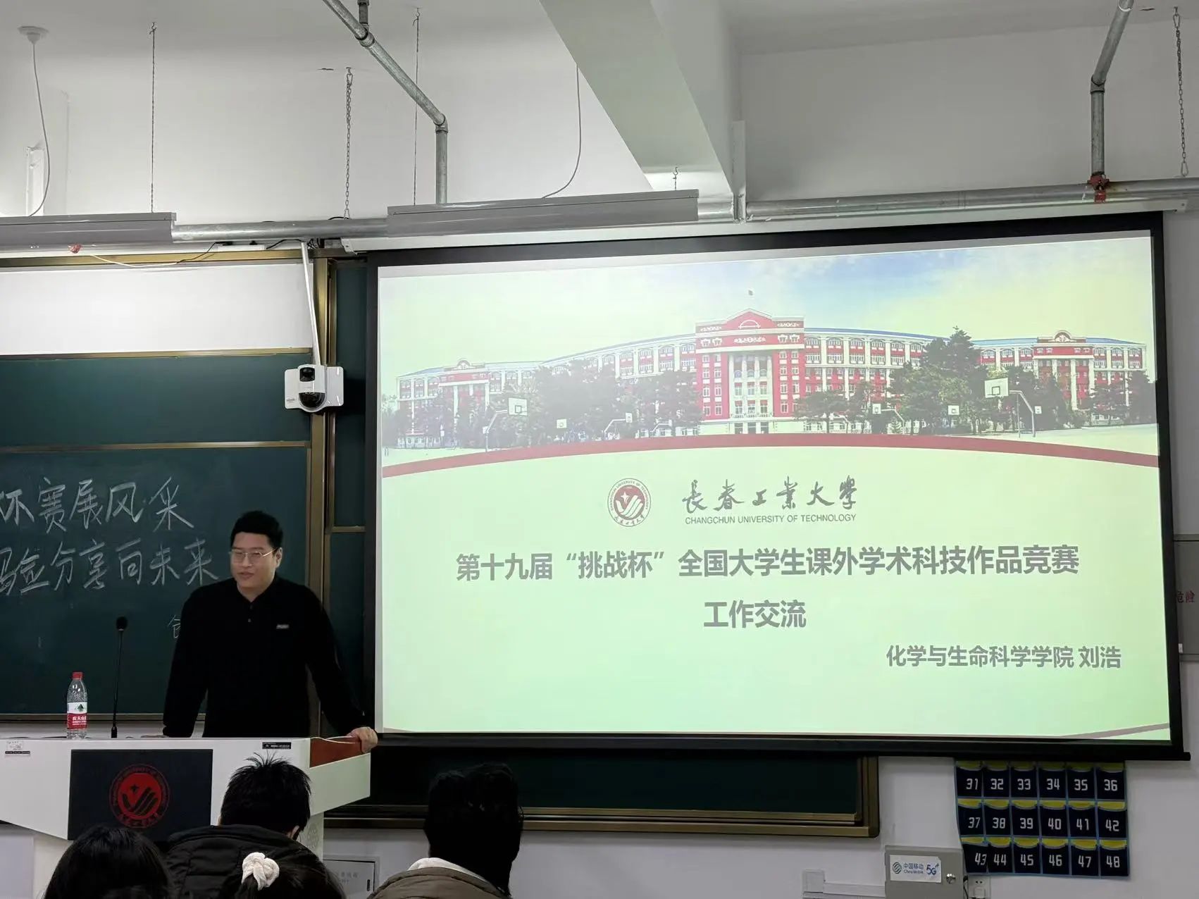 永利yl23411于2024年12月9日下午六点在北湖东区主教学楼201教室开展了“挑战杯”竞赛赛前经验交流分享会,特别邀请挑战杯第十八届全国老员工课外学术科技作品竞赛二等奖团队负责人刘浩,2024年挑战杯吉林省老员工创业计划竞赛金奖团队负责人曹馨月为大家做经验分享交流。