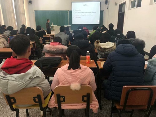 报告会上,李启寨教授以“Bayesian neural networks for selectionf drug sensitive genes”(选择药物敏感基因的贝叶斯神经网络)为题,向同学们展示了统计学在医学上的重要性。他从寻找抗癌药物基因的建模说起,指出了目前存在的三大困难,随后利用前馈贝叶斯神经网络针对三大难题分别给出了相应的改进:首先用一个非线性函数描述因变量与自变量的关系,再通过变量选择对自变量进行降维,通过数值模拟显示了提出方法的有效性,最后成功应用到抗癌药物响应问题中。让大家深刻领略到了统计学在生物医学中的重要性,对公司师生的学习和科研具有重要的启发意义。