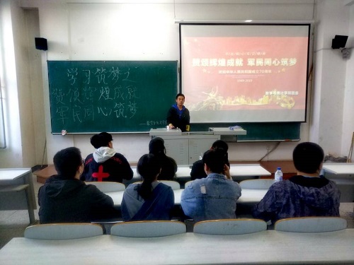永利yl23411团委讯(通讯员:张及佳 桂尚珂)为教育员工们以良好的心态面对挑战,严格按照党的战略部署,迎难而上,以坚定的步伐向着百年目标前进。2019年9月26日上午8点,永利yl23411团委在教图楼111室举办“学习筑梦”系列活动之“赞颂辉煌成就,军民同心筑梦”。此次学习由180801班团支书闫新洋主讲,大二各团支部的委员们参加了本次学习活动。