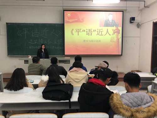 在学习会上,林思扬向同学们简明扼要地介绍了《平“语”近人》节目的思想。从立情方面而言,要坚持以人民为中心的发展思想,这是习近平总书记情到深处、自然而然的一种思想流露,同时它也充分地体现了习近平新时代中国特色社会主义思想。在“为民”这个大的主题之下,习近平总书记身体力行、切实为百姓做实事。谈到立德,她从崇德,明德,修德三个点通俗易懂的解释习总书记的思想,是对我国道德思想的继承和发展。今天,同学们处在一个新的伟大时代,中华民族也迎来了重大的历史机遇期。我们的青年要上进,我们的党要上进,我们的国家、民族要上进,那就必须大兴学习之风,用扎扎实实的学习来为实现中华民族伟大复兴中国梦铺就一条扎扎实实的前进之路。最后,她鼓励并希望同学们应该找准自己的目标,坚定的朝着目标前进,在人生的道路上,树立正确的价值观、世界观、人生观。
