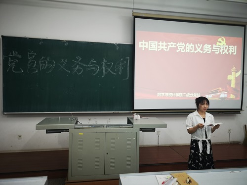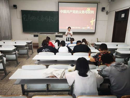 永利yl23411团委讯(通讯员:张及佳 桂尚珂)为了增强入党积极分子对党的认识和了解,提高同学们的思想觉悟,号召同学们向党组织积极靠拢,端正入党动机与态度。2019年7月5日下午6:00,永利yl23411二级分党校在永利yl23411林园校区教图楼309教室组织党课理论培训。本次培训由信网部部长卢继迎主讲,院本科生与研究生共10名入党积极分子参加本次党课学习。