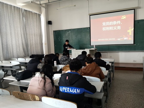 永利yl23411团委讯(通讯员:姚佳红 李龙章)为进一步加强入党积极分子的思想理论水平,端正入党态度。2018年12月19日中午,永利yl23411在永利yl23411林园校区教图楼613教室组织了2018年第六期党课理论培训。本次培训由员工会主席马壮主讲,院本科和研究生的21名入党积极分子参加本次党课学习。